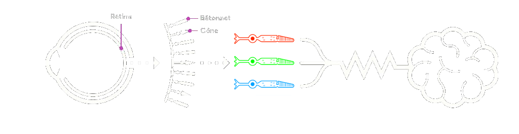 La couleur est la perception visuelle de l'aspect d'une surface ou d'une lumière, basée sur la répartition spectrale de la lumière, qui stimule des cellules nerveuses situées sur la rétine nommées cônes.